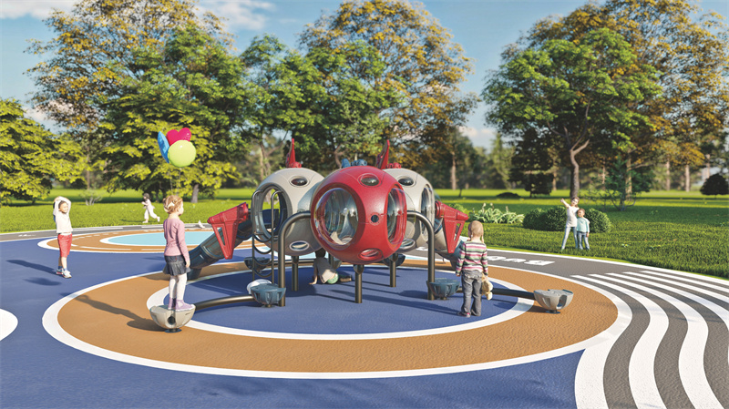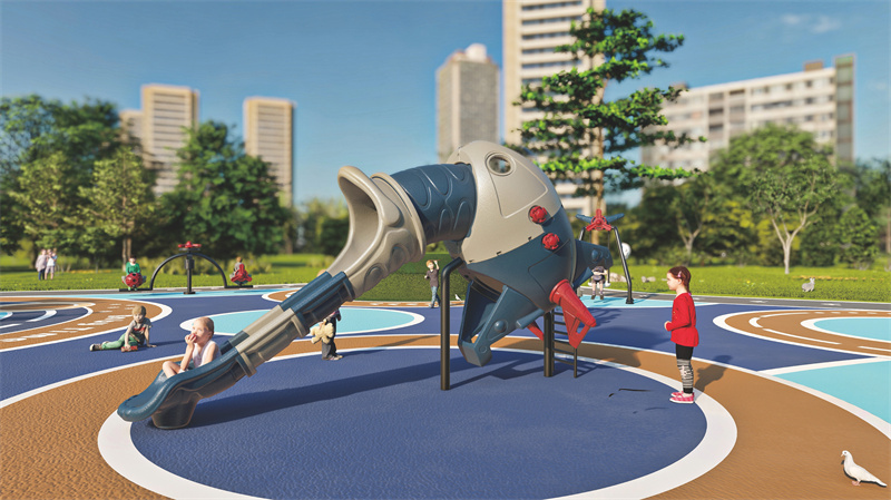 Diverse Activity Types: It integrates slides, climbing structures, swinging devices, and role-playing elements (like the road-themed layout for imaginative play about traffic). Children can slide, climb, swing, and engage in pretend play, catering to various motor skills and interests.